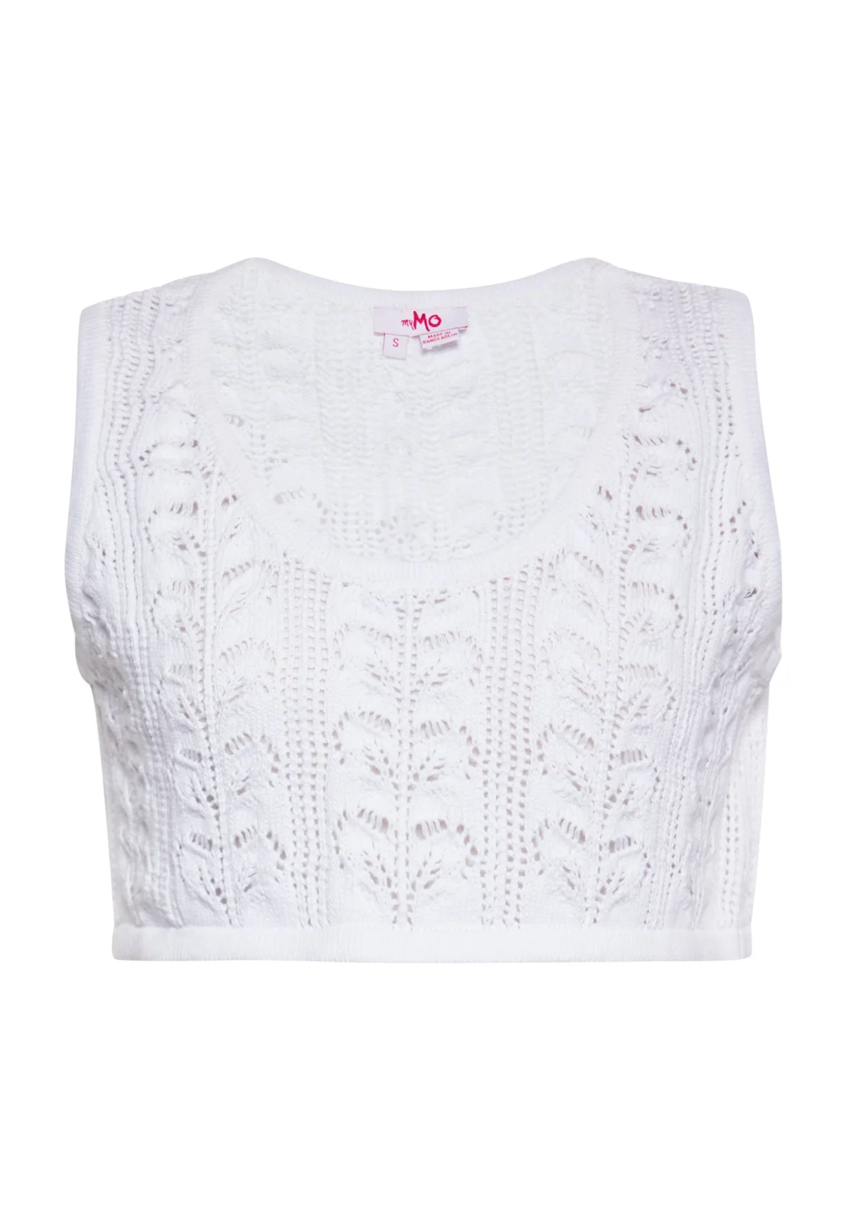 Ontdek een chique toevoeging aan je garderobe met deze opengewerkte, mouwloze crop-top. Deze top heeft een structuurpatroon van gehaakte ontwerpen en ingewikkelde opengewerkte details en straalt casual elegantie uit. De ronde halslijn en geribde zoom zorgen voor een aansluitende pasvorm. Deze gehaakte crop-top is perfect voor verschillende gelegenheden en is zowel stijlvol als veelzijdig. Top