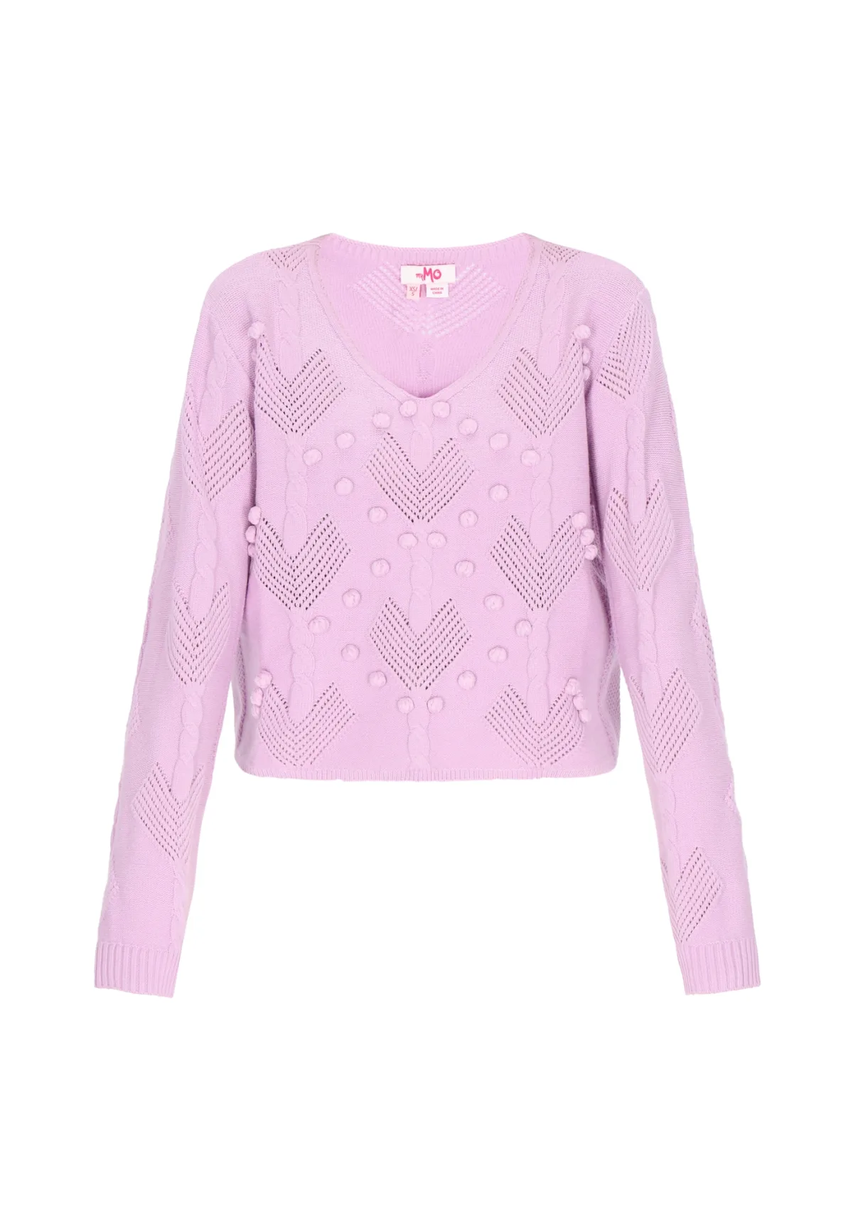 Design: Geribbeld gebreid, Vlecht brei, Pompoms; Type sluiting: Slip; Materiaal: Knitwear; Halstype: V-hals; Motief: Effen; Details: Mesh; Extra's: Op staal naden; Pasvorm: Normale pasvorm; Armlengte: Lange mouw; Lengte: Normale lengte