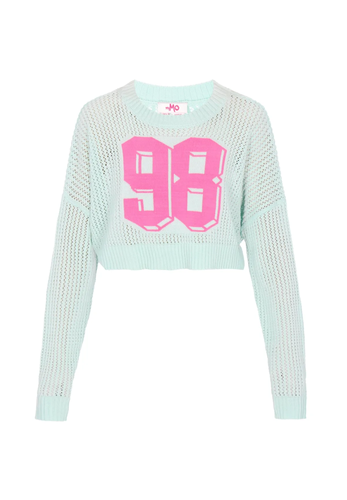Design: Geribbelde kraag, Extra lange mouwen; Type sluiting: Slip; Materiaal: Knitwear; Halstype: Ronde hals; Motief: Tekst print; Extra's: Op staal naden, Perforatie; Pasvorm: Normale pasvorm; Armlengte: Lange mouw; Lengte: Korte pasvorm