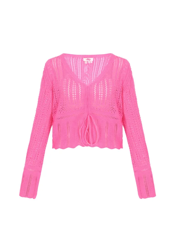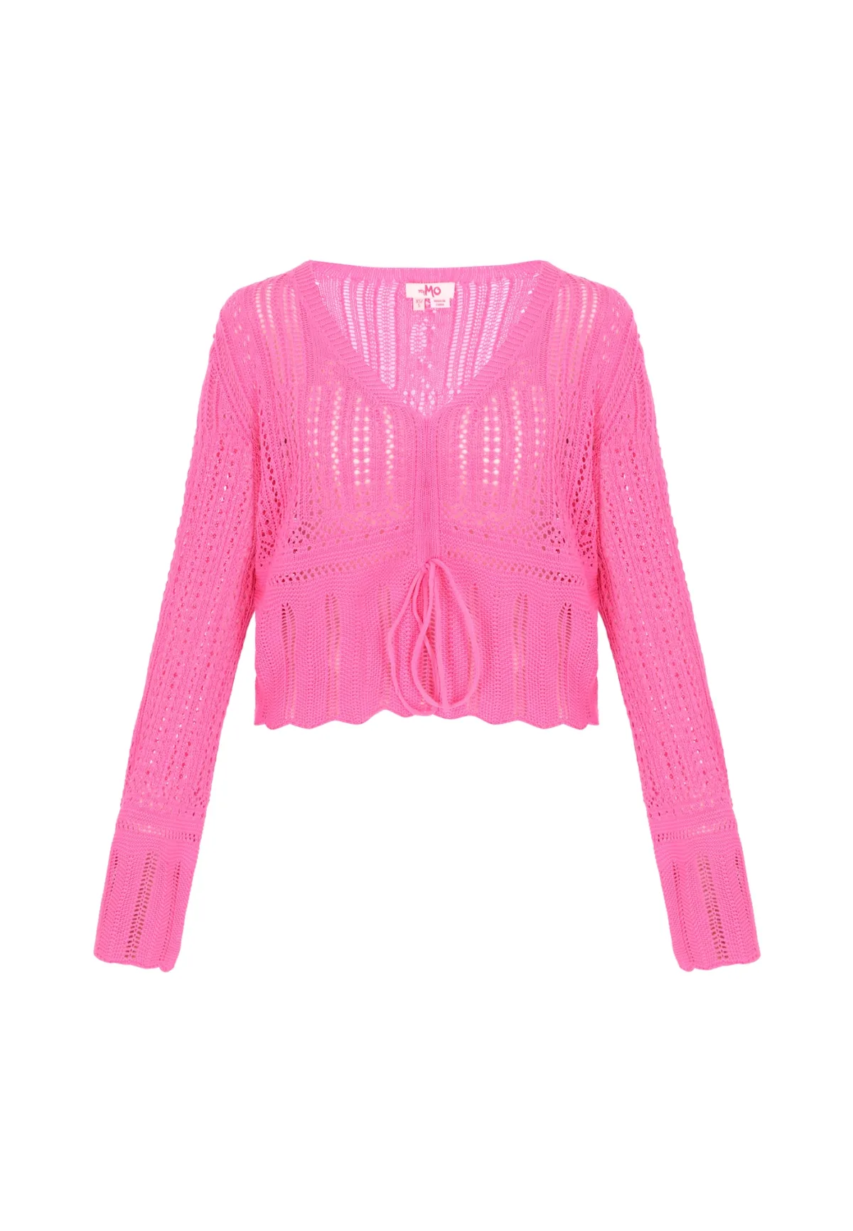 Design: Om te knopen/binden, Geschulpte zoom; Materiaal: Knitwear; Halstype: V-hals; Motief: Effen; Details: Mesh; Extra's: Licht transparant, Met textuur; Pasvorm: Losse pasvorm; Armlengte: Lange mouw; Lengte: Korte pasvorm