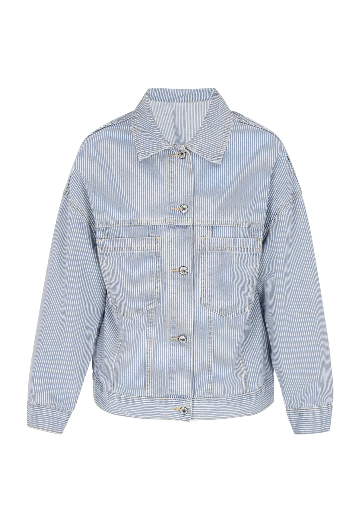 Design: 1-knoops manchetten, Rechte zoom, Knop placket, Overcut schouder, Opgezette zakken, Borstzak; Type sluiting: Knoopsluiting; Voering: Niet gevoerd; Materiaal: Denim; Motief: Gestreept; Extra's: All-over patroon, Stevige stof; Pasvorm: Losse pasvorm