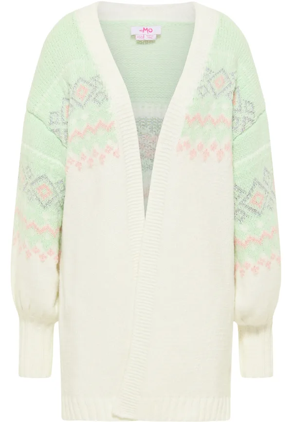 De open, lange vorm en de wijde mouwen geven het vest van myMo een stijlvolle kick. De zachte wolmix met een klassiek fair-isle patroon wordt een van de hotste kanshebbers voor de meest begeerde herfst-winterlook dankzij de glinsterende metallic draden. Het grove breisel houdt je warm en ziet er ook cool uit met grove laarzen en denim.