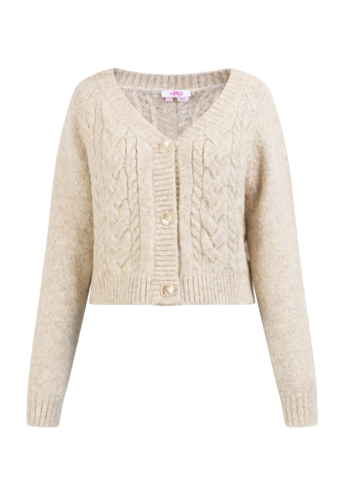Met zijn brede kabelpatroon en trendy cropped vorm is dit vest van myMo de favoriet van het winterseizoen. Het is gemaakt van een zachte garenmix en wordt geaccentueerd met geribde boorden. De licht geknipte pasvorm, een V-hals en chique knopen ronden het model met veel gemak af.