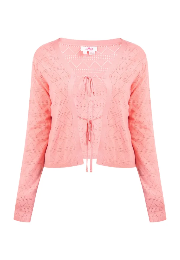 In delicate pasteltinten en met een fijn structuurpatroon bestaande uit gaten en zigzags zet dit vest van myMo zomerse accenten. De fijne strikjes dienen als sluiting en maken net als de geribbelde uiteinden het ontwerp compleet. Vest