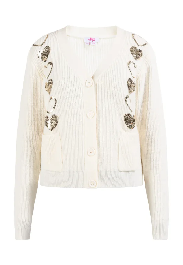 Geen voering/geen voering Hart van goud! Dit zachte vest van myMo maakt indruk met zijn geborduurde paillettenapplicaties in de vorm van harten. Dit betekent dat wij een vest hebben dat zowel overdag als ‘s avonds gedragen kan worden. Het zachte garenmengsel en de kleine opgestikte zakjes ronden het prachtige ontwerp succesvol af. Vest