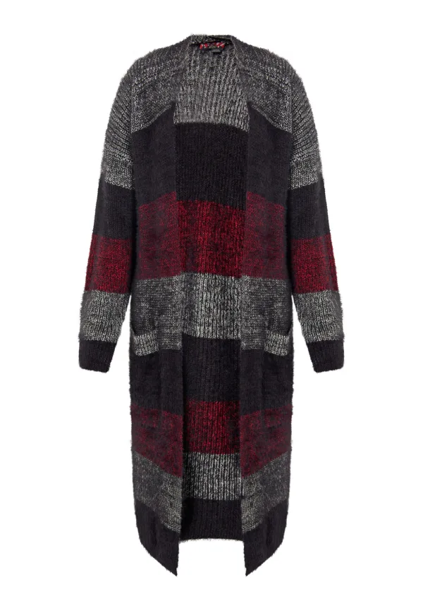 myMo ROCKS Gebreid vest grijs gemeleerd rood gemeleerd zwart