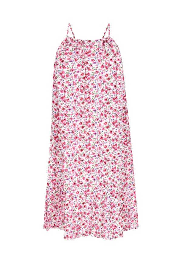 Design: Gevoerde zoom/rand; Materiaal: Viscose; Halstype: Carréhals; Motief: Bloemenprint; Soort bandjes: Spaghettibandjes; Details: Volant, Gedrapeerd; Extra's: All-over patroon, Voelt zacht aan; Lengte: Kort/mini; Snit: Recht; Pasvorm: Losse pasvorm; Armlengte: Mouwloos