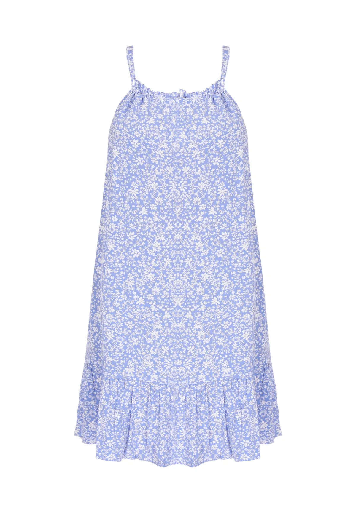 Design: Gevoerde zoom/rand; Type sluiting: Slip; Materiaal: Viscose; Halstype: Ronde hals; Motief: Bloemenprint; Soort bandjes: Spaghettibandjes; Details: Volant, Gedrapeerd; Extra's: All-over patroon; Lengte: Kort/mini; Snit: Uitlopend; Pasvorm: Losse pasvorm; Armlengte: Mouwloos