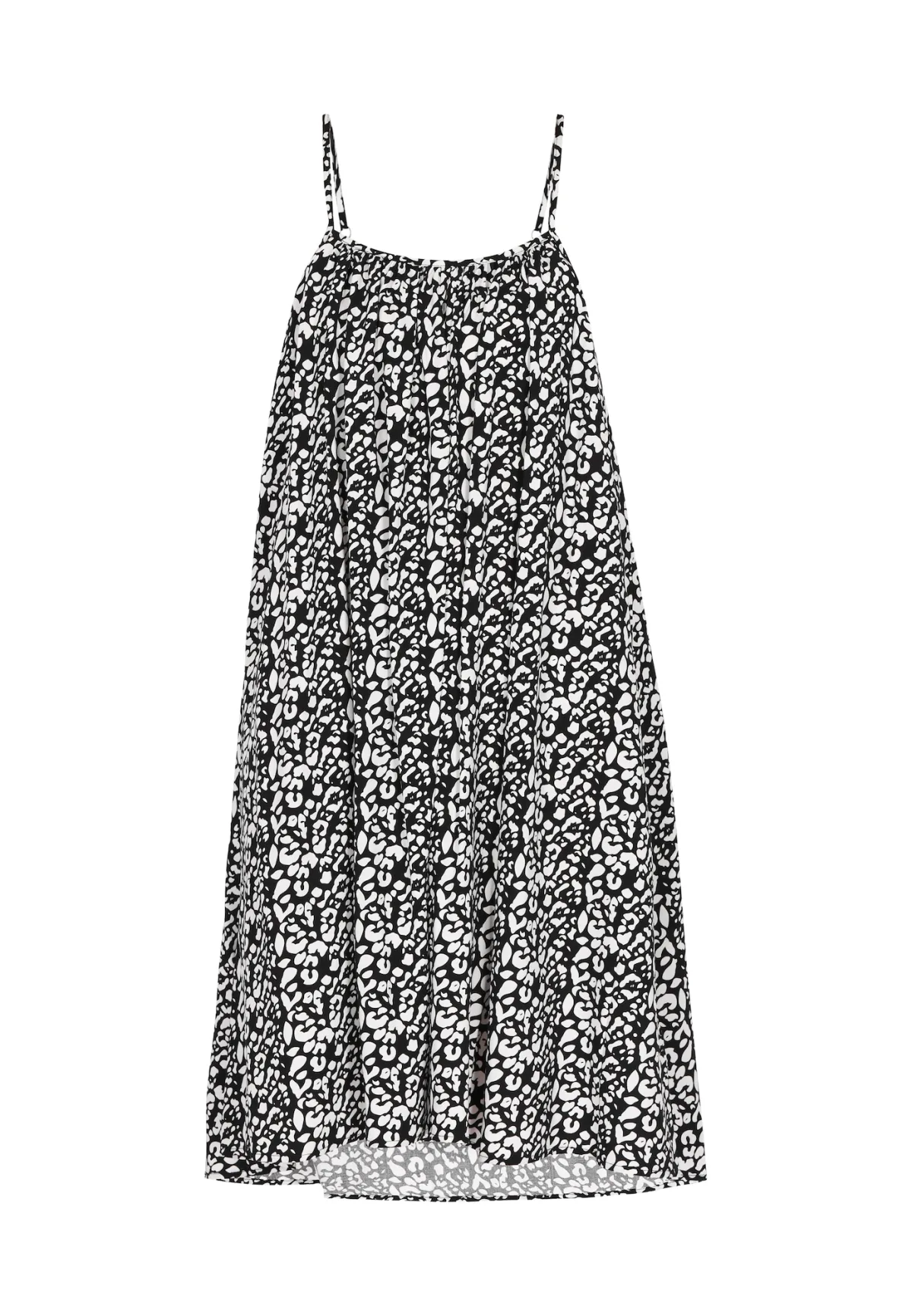 Design: Gevoerde zoom/rand, Verlengd rugpand; Materiaal: Viscose; Halstype: Ronde hals; Motief: Dierenprint; Soort bandjes: Spaghettibandjes; Details: Gedrapeerd; Extra's: All-over patroon, Voelt zacht aan; Lengte: Knielengte; Snit: Uitlopend; Pasvorm: Normale pasvorm; Armlengte: Mouwloos