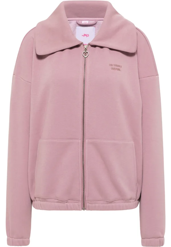 Houd nog meer van jezelf - dat is jouw statement, geborduurd op de voorkant van het sweatjack van myMo. Net zo liefdevol omhult het superzachte zweet je met behaaglijke warmte, die nog extra behaaglijk wordt gemaakt door de zachte, opgeruwde binnenvoering. De grote opvouwbare kraag, het relaxte oversized model en de gespleten kangoeroezak tonen een casual retrostijl. Zweetjasje