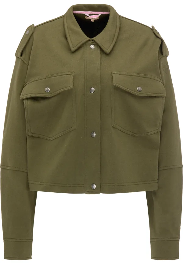 Geen voering/geen voering, geen vulling Kort en zoet. Dit sweatjack van myMo is stijlvol oversized en heeft een korte snit in een trendy cropped look. Het casual model wordt aangevuld met schouderkleppen, opgestikte zakken en drukknopen met logo. Een kleine myMo-stick op de bovenarm maakt het totaalbeeld succesvol compleet. Helemaal trendy met een high-waist jeans of bijpassende joggingbroek. Zweetjasje