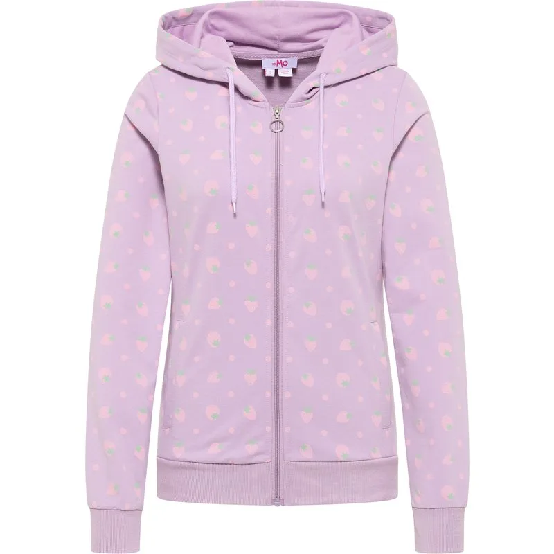 Speels en stijlvol tegelijk! Het sweatjack van myMo is gemaakt van een hoogwaardige, lichte katoenmix en valt meteen op door de all-over fruitprint. Twee praktische zijzakken met ritssluiting, de verstelbare capuchon en de geribde manchetten maken de look compleet. Of het nu voor de vrije tijd of thuis is, dit gezellige pastelkleurige sweatjack is supercool, comfortabel en absoluut geschikt voor dagelijks gebruik. PS, de truien zijn ideaal te combineren met de bijpassende myMo joggingbroek. Sweatshirt