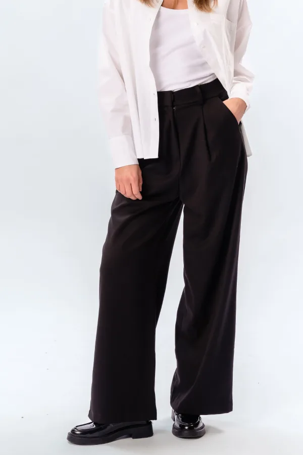 Nadia Broek - Zwart Ontdek de ultieme combinatie van comfort en stijl met onze Nadia broek in het zwart. Deze broek heeft een relaxte pasvorm en houdt je de hele dag comfortabel. Perfect voor zowel casual als formele gelegenheden, een must-have in elke garderobe. Voeg een verfijnde touch toe aan je stijl met de Nadia broek. Shop nu en upgrade je garderobe!