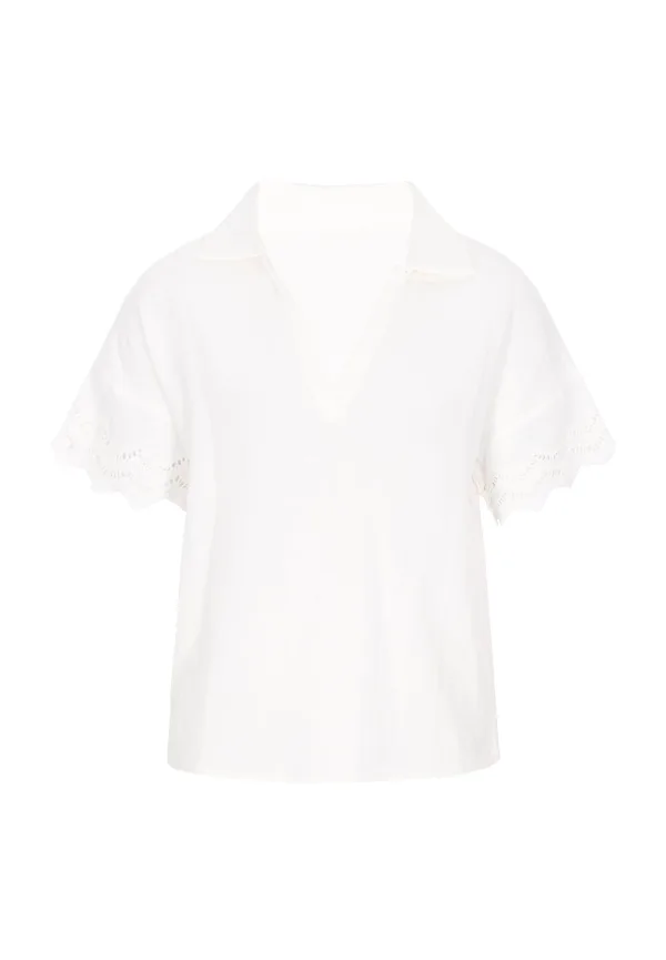 Blouse type: Blouseshirt; Design: Gevoerde zoom/rand, Turn-down kraag; Materiaal: Katoen; Motief: Effen; Details: Borduursels, Mesh; Extra's: Lichte stof, Voelt zacht aan; Pasvorm: Normale pasvorm; Armlengte: Kwartmouw; Lengte: Normale lengte