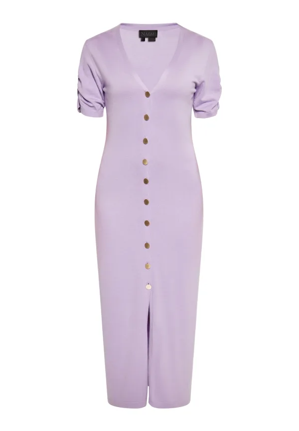 Design: Knop placket, Knop sluiting; Type sluiting: Knoopsluiting; Materiaal: Knitwear; Halstype: V-hals; Motief: Effen; Details: Gedrapeerd; Extra’s: Voelt zacht aan; Lengte: 3/4 lengte; Snit: Figuur omarmend; Pasvorm: Aansluitende pasvorm; Armlengte: Kwartmouw