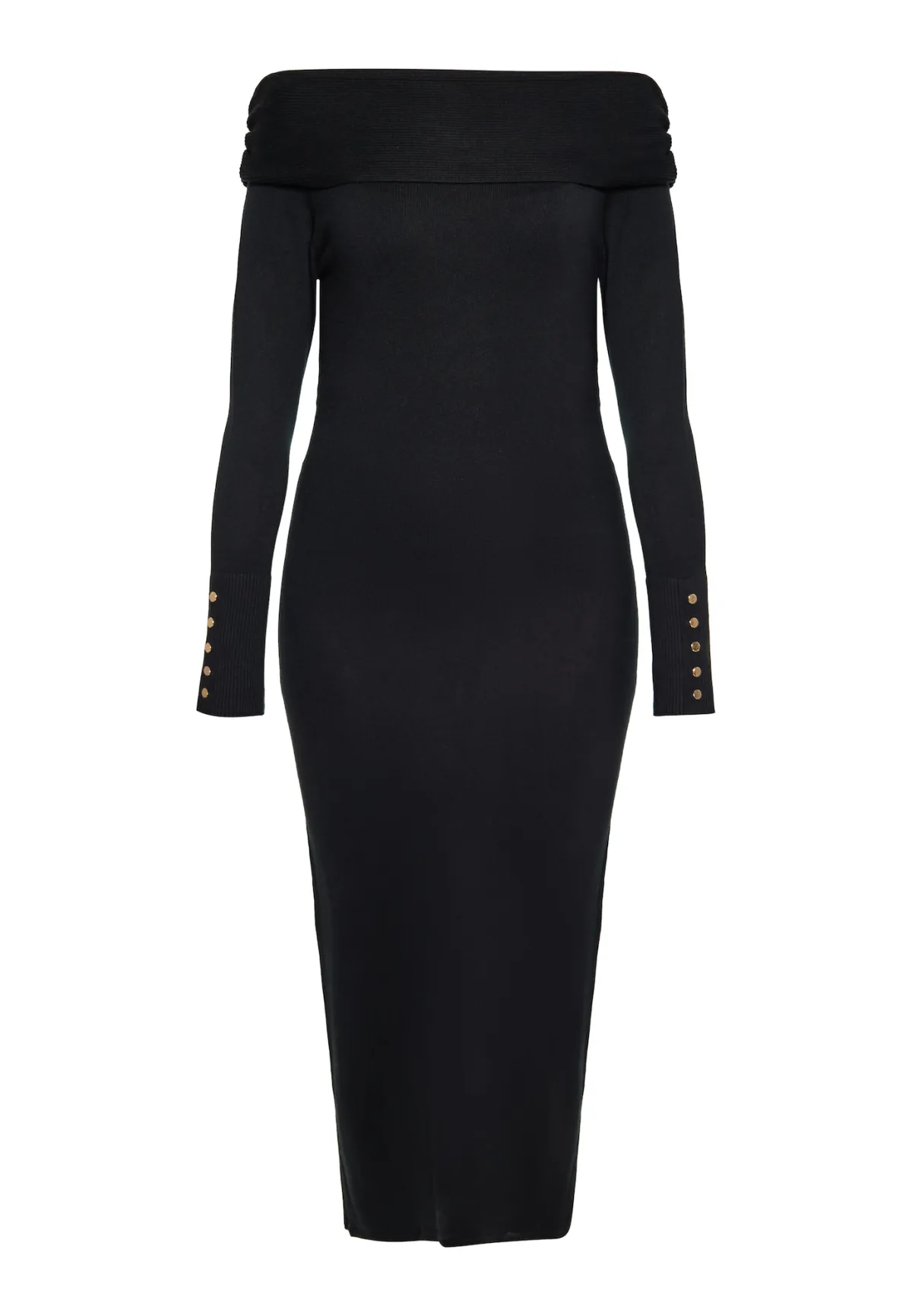 Design: Strapless/off-shoulder; Materiaal: Knitwear; Halstype: Carmen hals; Motief: Effen; Extra's: Op staal naden; Lengte: 3/4 lengte; Snit: Figuur omarmend; Pasvorm: Slanke pasvorm; Armlengte: Lange mouw