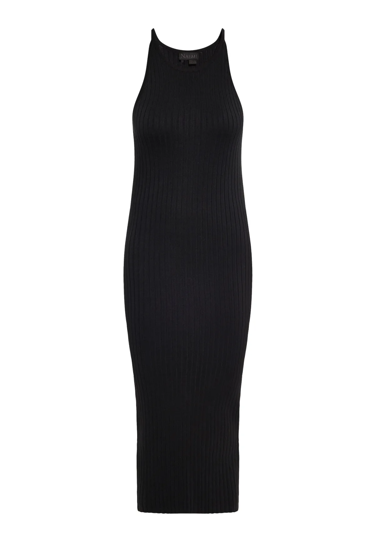 Design: Geribbelde kraag; Materiaal: Knitwear; Halstype: Ronde hals; Motief: Effen; Soort bandjes: Spaghettibandjes; Extra’s: Met textuur; Lengte: Lang/maxi; Snit: Figuur omarmend; Pasvorm: Aansluitende pasvorm; Armlengte: Mouwloos