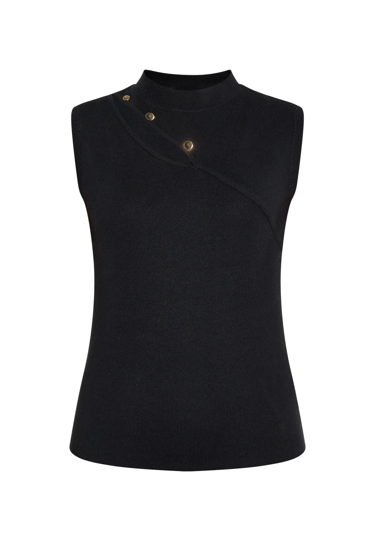 Design: Siernaad; Materiaal: Knitwear; Halstype: Opstaande kraag; Motief: Effen; Soort bandjes: Normale bandjes; Details: Cut-outs; Extra's: Fully fashioned, Op staal naden; Pasvorm: Slanke pasvorm; Armlengte: Mouwloos; Lengte: Normale lengte