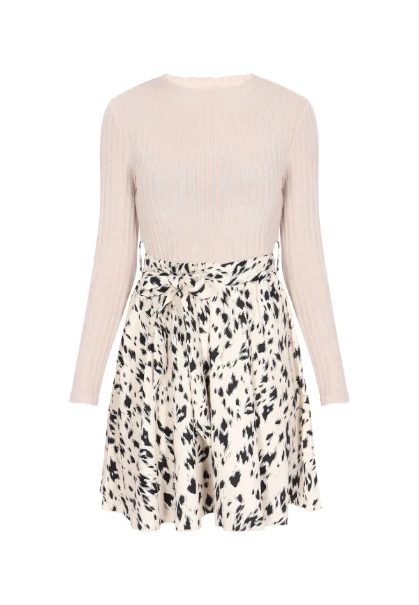 Design: Met riem; Halstype: Ronde hals; Motief: Dierenprint; Details: Plooien, Gedrapeerd; Extra's: Lichte stof; Lengte: Kort/mini; Pasvorm: Normale pasvorm; Armlengte: Lange mouw