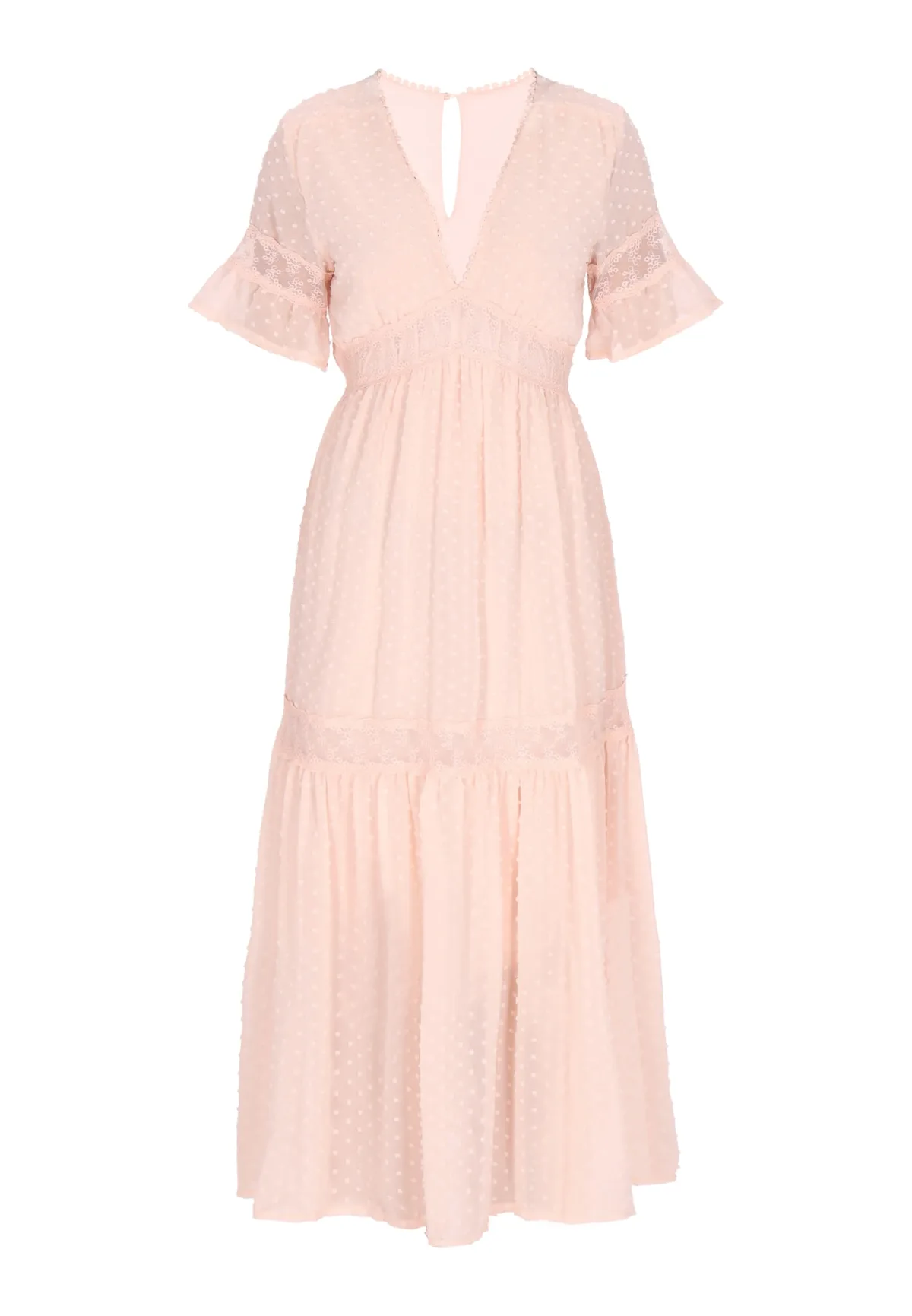 Design: Gevoerde zoom/rand, Keyholesluiting; Type sluiting: Knoopsluiting; Materiaal: Chiffon; Halstype: V-hals; Motief: Gestippeld; Details: Cut-outs, Kant, Volant, Gedrapeerd; Extra’s: All-over patroon, Op staal naden; Lengte: 7/8 lengte; Snit: Getailleerd; Pasvorm: Normale pasvorm; Armlengte: Kwartmouw