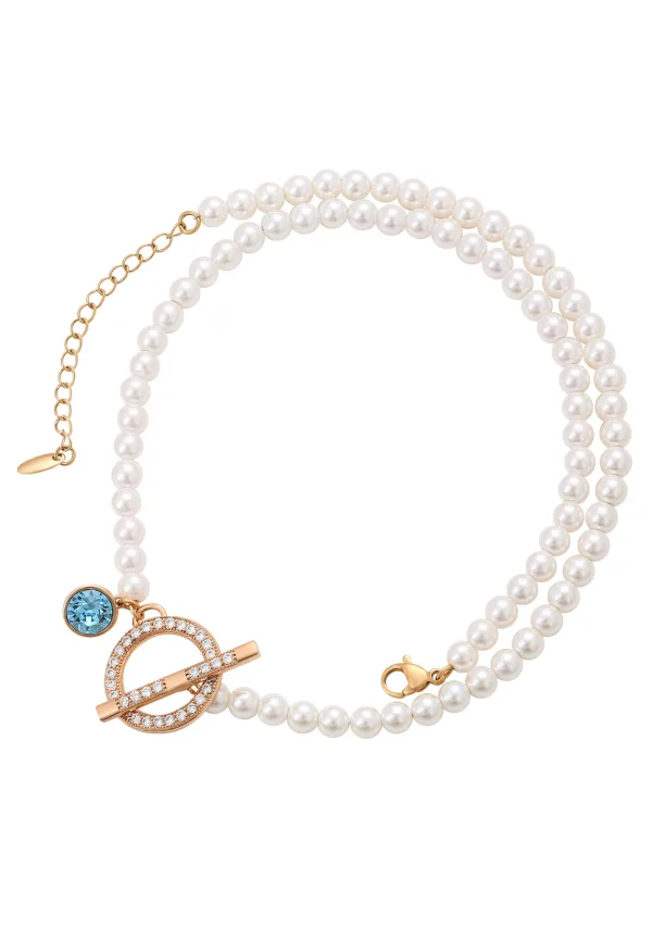 Specificaties: NAEMI Ketting lichtblauw / goud / parelwit