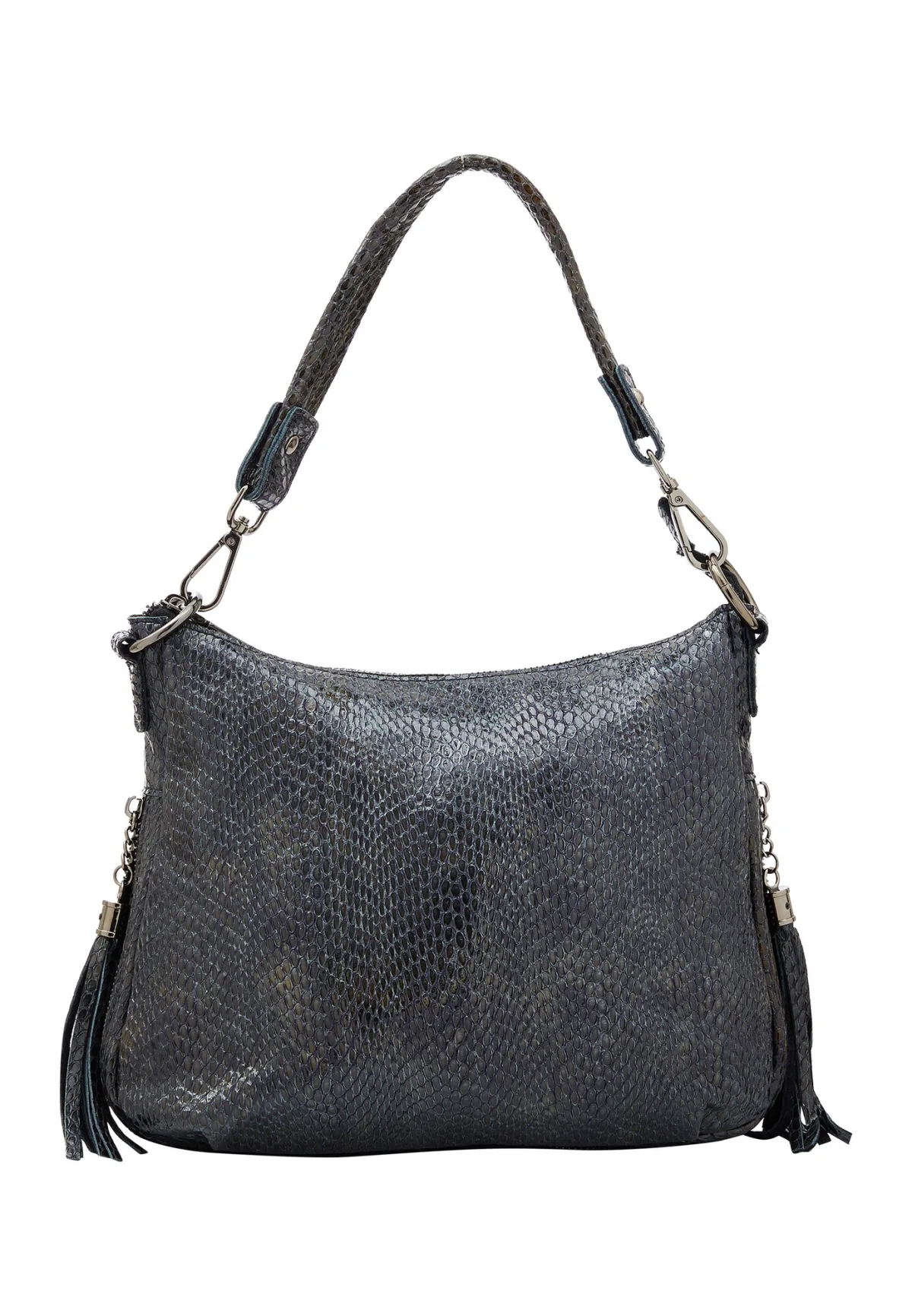 Design: Afneembare banden, Ruim hoofdvak, Ritsvak binnen; Type sluiting: Ritssluiting; Materiaal: Leer; Motief: Dierenprint; Materiaal: Glad leer; Extra's: Franjes, Reptile look; Maat (inhoud): Klein (< 25 l); Hengsellengte: Lange schouderriemen, Korte schouderriemen