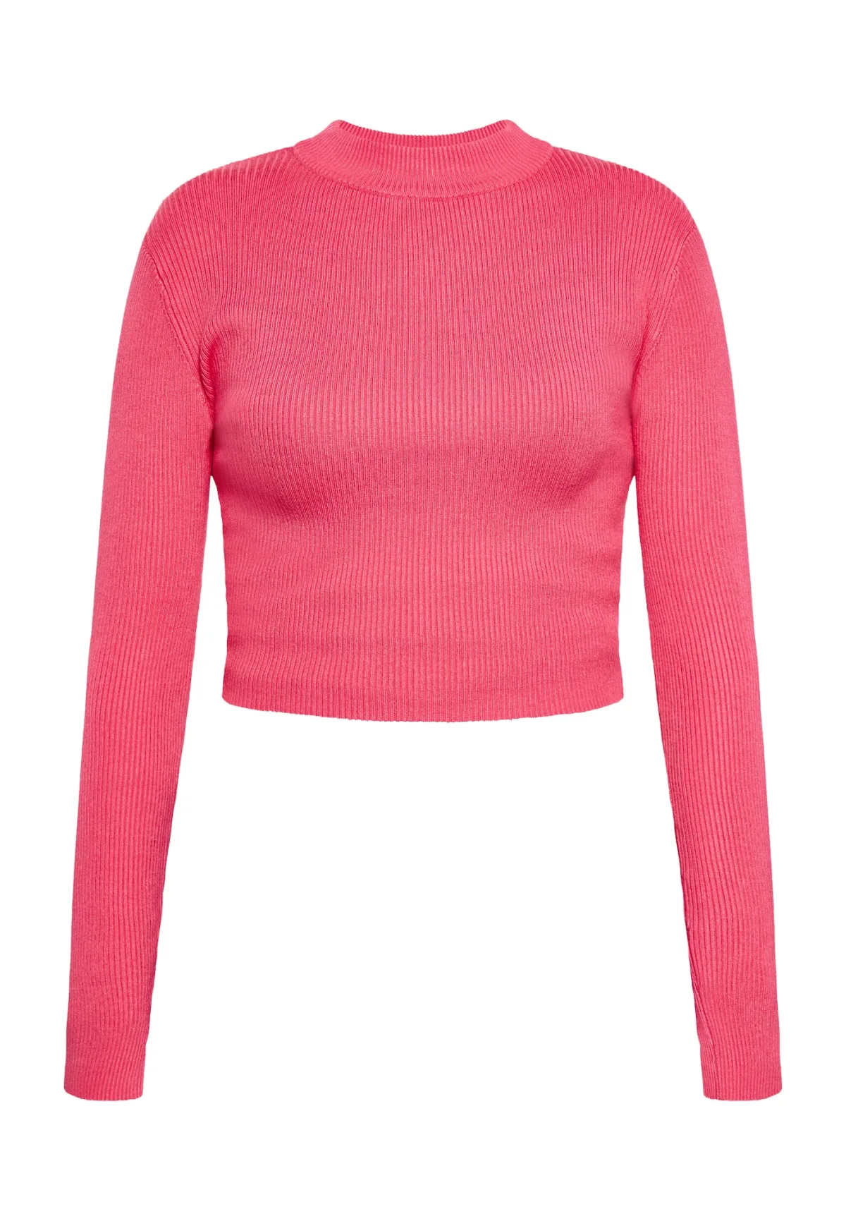 Design: Geribbelde kraag; Materiaal: Viscose; Halstype: Opstaande kraag; Motief: Effen; Extra's: Met textuur; Pasvorm: Slanke pasvorm; Armlengte: Lange mouw; Lengte: Korte pasvorm