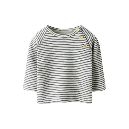 De gestreepte NAME IT BABY longsleeve jongens is een basic voor elke dag. De zachte kwaliteit van 100% katoen voelt comfortabel aan op de gevoelige babyhuid en geeft genoeg bewegingsvrijheid tijdens spelen, kruipen of de eerste stapjes. De tijdloze strepen maken deze longsleeve makkelijk te combineren met allerlei broekjes en leggings.Praktische details voor elke dag Gemaakt van 100% katoen, zacht en prettig om direct op de huid te dragen Regular fit, waardoor het shirt niet te strak en niet te wijd zit Lange mouwen, ideaal voor wisselvallig weer of als extra laagje Ronde hals met knoopsluiting, zodat je de longsleeve gemakkelijk over het hoofd aantrekt Gestreepte print, een rustige maar speelse look voor elke dag Geen zakken, voor een comfortabele pasvorm zonder extra bulk Maatadvies: dit artikel valt normaalComfortabele outfit voor jouw kleintjeDeze NBMBRIPO longsleeve is handig in gebruik, zowel thuis als onderweg. Het shirt is geschikt om los te dragen op een broekje of onder een trui of vest als extra laag. Door de knoopsluiting bij de hals gaat omkleden vlot, ook als je kindje even geen geduld heeft.NAME IT BABY, gedacht vanuit het kindNAME IT BABY ontwerpt kleding speciaal voor de allerkleinsten, met aandacht voor draagcomfort, zachte materialen en een pasvorm die past bij een actief kind. De collecties zijn makkelijk te combineren, zodat je met een paar items steeds weer een andere outfit samenstelt.Een gestreepte basic waarin je kindje goed kan bewegen.
