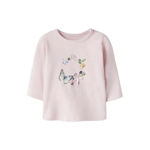Voor elke dag met je kleintje is deze lichtroze baby longsleeve van NAME IT BABY een fijne basic. De zachte stof met stretch beweegt makkelijk mee, zodat je baby vrij kan kruipen, rollen en ontdekken. De ronde hals met praktische drukknoopsluiting maakt aankleden rond het hoofdje eenvoudig en prettig.Zachte basic met lieve details Lichtroze kleur met printopdruk voor een zachte, speelse uitstraling Gemaakt van 95% katoen en 5% elastaan, voor een soepele stof die prettig aanvoelt op de huid Langemouw model met rechte mouwen, geschikt voor dagelijks gebruik in elk seizoen Handige drukknoopsluiting, waardoor je de halsopening eenvoudig wat ruimer maakt Klein strikje als detail voor een subtiel, lief accent Valt volgens het maatadvies normaal, waardoor je gewoon de gebruikelijke maat kunt kiezen Onderhoud: handwas, niet strijken en niet drogen in de droogtrommelPraktisch in het dagelijks aankledenDeze longsleeve past makkelijk bij rompers, leggings of zachte broekjes uit de dagelijkse garderobe van je baby. De lange mouwen geven net wat extra warmte, terwijl de lichte stof comfortabel blijft in huis of onder een vestje als het kouder is.Kindvriendelijke stijl van NAME ITNAME IT BABY maakt kleding speciaal voor de allerkleinsten, met aandacht voor zachte materialen en praktische details zoals drukknoopjes. De collecties sluiten aan bij het dagelijkse leven met een baby, zodat je eenvoudig fijne outfits samenstelt die prettig zitten en er verzorgd uitzien.Een lieve, comfortabele longsleeve die zo mee kan in de vaste rotatie van de babygarderobe.