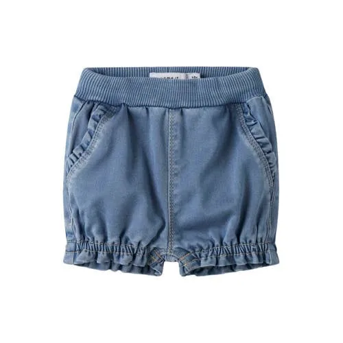 Deze korte broek voor meisjes van NAME IT BABY is een praktische basic voor elke dag. De short heeft een light blue denim look, maar voelt zacht en soepel aan. Ideaal voor drukke dagen vol kruipen, spelen en ontdekken. De verfijnde plooien en ruches geven het broekje een speelse uitstraling die goed combineert met rompers, T-shirts en blouses.Zacht comfort met handige details Gemaakt van lyocell, viscose en elastaan voor een zachte, soepele stof met lichte stretch Elastische tailleband met verstelbare taille, waardoor het broekje goed blijft zitten Regular waist, comfortabel voor baby en new born Voorzien van zakken aan de voorkant voor een casual denim look Plooien en ruches zorgen voor een meisjesachtig detail Effen design in light blue denim, makkelijk te combinerenPraktisch in het dagelijks levenDe NBFBELLA short past goed in de daily garderobe van je kleintje. Door de elastische taille gaat het aan- en uittrekken snel en eenvoudig. Het broekje is wasbaar op 40 graden en mag niet in de droogtrommel, zo blijft de stof mooi. Warm strijken op 2 punten is mogelijk als je het extra netjes wilt hebben.NAME IT BABY voor de allerkleinstenNAME IT BABY ontwerpt kleding speciaal voor de eerste levensfase, met aandacht voor comfort, zachte materialen en kindvriendelijke pasvormen. De collecties combineren praktische details met een moderne, toegankelijke stijl, zodat je kleintje vrij kan bewegen en er verzorgd uitziet.Een zachte, makkelijk te combineren korte broek die elke dag weer van pas komt.