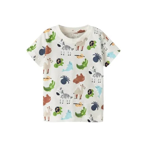 Voor de allerkleinsten is comfort het belangrijkst. Dit wit baby T-shirt met korte mouw van NAME IT BABY is zacht, soepel en praktisch in gebruik. Het T-shirt heeft een rustige witte basis met een all over print, waardoor het er speels uitziet zonder te druk te zijn. Door de toevoeging van elastaan rekt de stof licht mee, zodat je baby zich vrij kan bewegen tijdens spelen, slapen en knuffelen.Praktische details voor elke dag Gemaakt van 95% katoen en 5% elastaan, voelt zacht aan op de gevoelige babyhuid Korte mouwen, ideaal voor binnen of onder een vest Ronde hals met drukknoopsluiting om het T-shirt makkelijk over het hoofd aan en uit te doen All over print voor een speelse look op de witte kleur Geschikt voor baby en new born, valt volgens maatadvies normaal Wasbaar op 40 graden, warm strijkbaar en niet drogen in de droogtrommel Maakt deel uit van een co-ord set, handig te combineren met andere items uit dezelfde lijnT-shirt voor dagelijks gebruikDit T-shirt uit de 'Daily' collectie is gemaakt voor iedere dag. Het is licht, makkelijk te combineren met een broekje of legging en door de drukknoopsluiting snel aan te trekken tijdens het verschonen of omkleden.NAME IT BABY: zachte kleding voor kleintjesNAME IT BABY richt zich op comfortabele babykleding met aandacht voor pasvorm en draaggemak. De materialen voelen zacht aan en de ontwerpen sluiten aan op het dagelijkse leven met een kleintje. Zo kies je met dit T-shirt voor een betrouwbaar basisitem in de kast van je baby.Een praktisch en zacht T-shirt waar je elke dag opnieuw naar grijpt.
