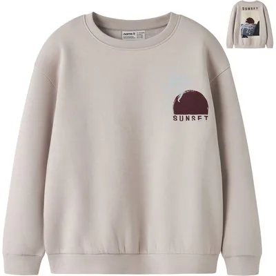 Tijdens drukke schooldagen is een comfortabele trui erg praktisch. Deze NAME IT jongens sweater in de kleur greige past daar goed bij. De neutrale grijsbruine tint combineert gemakkelijk met jeans, joggingbroek of chino en maakt het een praktische basic voor alledaags gebruik. De sweater heeft een ronde hals, lange mouwen en een relaxte pasvorm die volgens het maatadvies normaal valt.Praktische details voor elke dag Gemaakt van een zachte sweatkwaliteit met een hoog katoenpercentage voor een prettig gevoel op de huid Greige kleur met printopdruk en backprint voor een rustige, stoere look Geribde boorden langs hals, mouwen en zoom zodat de trui mooi op zijn plek blijft Lange mouwen en ronde hals maken het een comfortabele laag voor frisse dagen Onderdeel van de 'Daily' collectie, ontworpen voor dagelijkse draagmomenten naar school of in vrije tijd Geschikt voor schoolkind en tiener, dankzij de eigentijdse print en comfortabele pasvorm Onderhoudsvriendelijk: handwas, niet strijken en niet drogen in de droogtrommelComfortabele sweater voor school en vrije tijdDeze NKMDIKOL sweater is makkelijk aan te trekken en voelt zacht aan, zodat hij de hele dag door prettig blijft zitten. Ideaal voor in de klas, buitenspelen op het plein of een ontspannen middag thuis. Draag hem over een T-shirt en combineer met sneakers voor een complete, casual outfit.NAME IT KIDS: speelse stijl met aandacht voor comfortNAME IT KIDS ontwerpt kinderkleding met oog voor pasvorm, draaggemak en een moderne uitstraling. De collecties sluiten aan bij de leefwereld van kinderen en tieners, met items die tegen een stootje kunnen en er toch eigentijds uitzien.Een veelzijdige sweater die elke dag weer uit de kast gepakt kan worden.