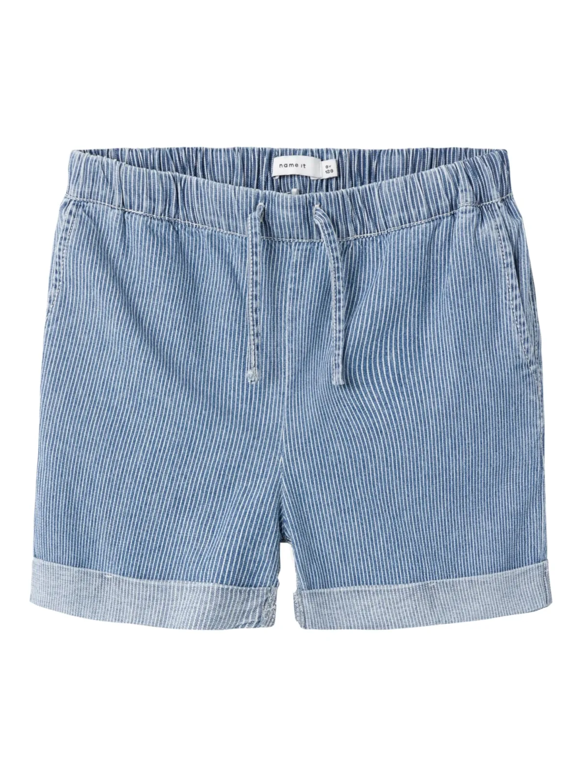 Design: Taille met trekkoord, Omgeslagen zoom, Zakken aan de zijkant, Verstelbare taille; Materiaal: Denim; Motief: Krijtstrepen; Details: Gedrapeerd; Extra's: All-over patroon, Vaste grip; Lengte: Kort/mini; Pasvorm: Loosefit