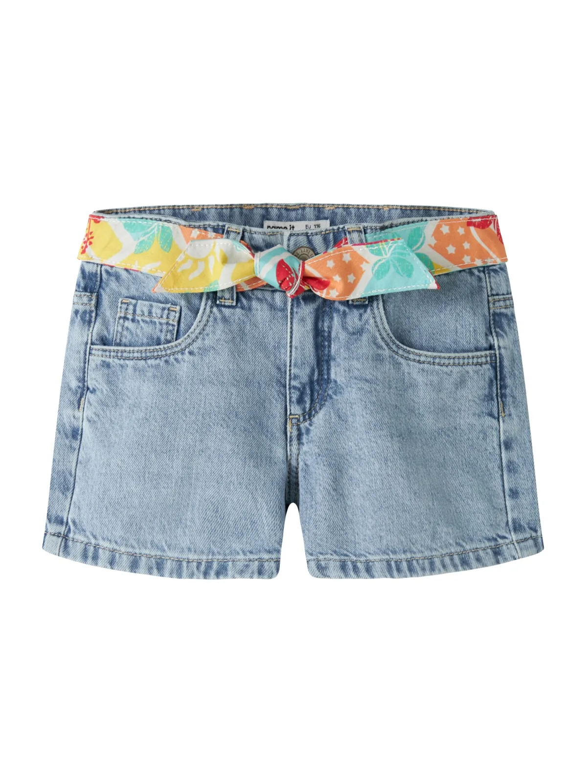 Deze denim korte broek voor meisjes van NAME IT is een praktische basic voor elke dag. De light blue denim kleur combineert makkelijk met T-shirts, blouses en truien, zodat deze short het hele seizoen door gedragen kan worden. Gemaakt van 100% katoen voelt de stof prettig aan op de huid en is deze korte broek geschikt voor school, speelafspraakjes en vrije tijd.Praktische details voor dagelijks draagplezier Gemaakt van 100% katoen, voor een zachte en stevige denim kwaliteit Regular waist met verstelbare taille, zodat de broek goed blijft zitten en meegroeit Rits- en haaksluiting, makkelijk aan en uit te trekken 5-pocket model, met genoeg ruimte voor kleine spulletjes Inclusief ceintuur voor een nette, afgewerkte look Effen light blue denim, eenvoudig te combineren met verschillende kleuren Maatadvies: dit artikel valt normaal Wasbaar op 40 graden, niet drogen in de droogtrommel, warm strijkbaar (2 punten)Ideaal voor school en vrije tijdDeze denim shorts uit de 'Daily' collectie is ontworpen voor schoolkinderen en tieners. In combinatie met sneakers en een eenvoudig T-shirt ontstaat in een paar seconden een complete outfit die geschikt is voor elke gewone dag.NAME IT KIDS voor alledaagse kinderkledingNAME IT KIDS maakt kinderkleding met aandacht voor draagcomfort en praktische details. De collecties sluiten aan bij het dagelijks leven van kinderen en bieden veel keuze in vertrouwde modellen, zoals deze denim korte broek in light blue denim.Een eenvoudige, veelzijdige short die makkelijk in de kast verdwijnt en vaak uit de lade wordt gepakt.