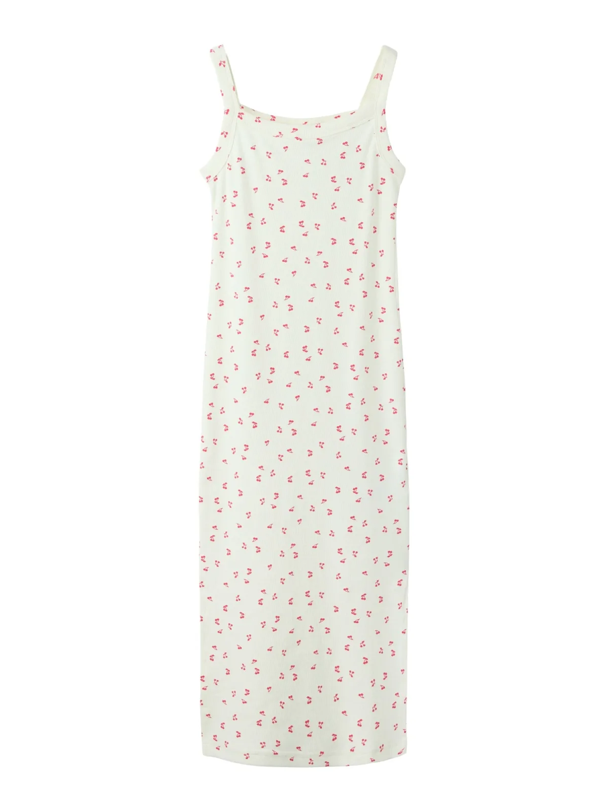 Design: Gevoerde zoom/rand, Rechte zoom; Materiaal: Jersey; Halstype: Ronde hals; Soort bandjes: Spaghettibandjes; Extra's: All-over patroon, Voelt zacht aan; Lengte: 3/4 lengte; Snit: Recht; Pasvorm: Slanke pasvorm; Armlengte: Mouwloos