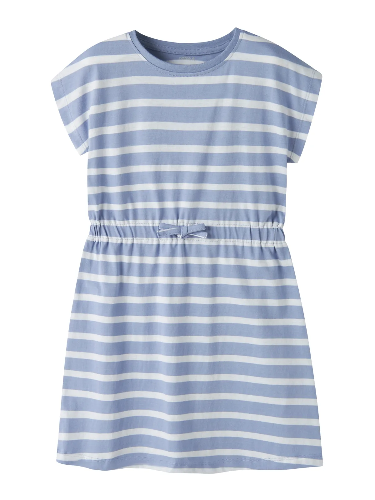 Deze NAME IT meisjes jurk NKFMIE is een luchtige keuze voor warme dagen. De streepprint geeft de jurk een speelse uitstraling en de ronde hals en korte mouwen zorgen voor comfortabel draaggemak. Dankzij de midi lengte valt de jurk rond de knieën, wat prettig is tijdens spelen, bewegen en onderweg naar school of een uitje. De striksluiting in de taille maakt het mogelijk de wijdte eenvoudig aan te passen.Praktische details voor dagelijks gemak Gemaakt van 100 procent katoen voor een zachte aanraking op de huid Korte mouwen die fijn zijn bij hogere temperaturen Midi lengte voor voldoende bewegingsvrijheid Striksluiting in de taille voor een verstelbare pasvorm Streepprint die makkelijk te combineren is met leggings of sandalen Valt volgens maatadvies normaal Zonder zakken voor een rustige vormgevingEen zomerse jurk voor veel momentenMet deze zomerjurk staat een outfit snel klaar. De jurk is geschikt voor een schooldag, een familiedag in het park of een vakantie aan zee. Door de rechte vorm en katoenen stof voelt de jurk licht aan tijdens het lopen, spelen en zitten.NAME IT KIDS als vertrouwde basisNAME IT KIDS richt zich op kleding die goed aansluit bij een actief kinderleven. Het merk combineert doordachte pasvormen met herkenbare prints en materialen die prettig aanvoelen. Zo ontstaat een garderobe die zowel praktisch als stijlvol is in het dagelijks gebruik.Een fijne basisjurk die makkelijk meegaat in het ritme van alledag.