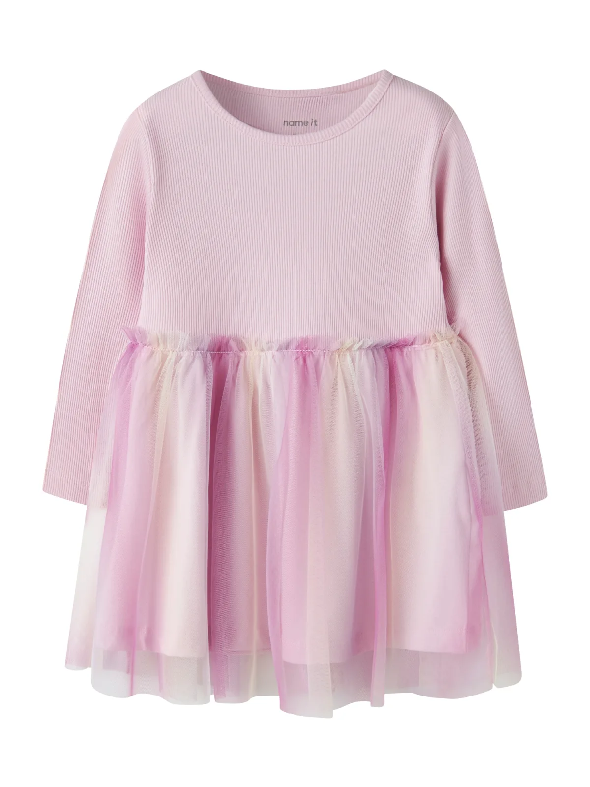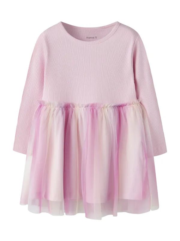 NAME IT Jurk ‘NMFDOTIANA’ lichtgeel / pink / rosa