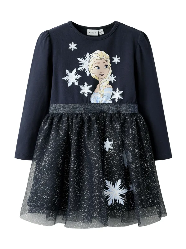 NAME IT Jurk ‘NMFOsimi Frozen’ navy / zilver / wit