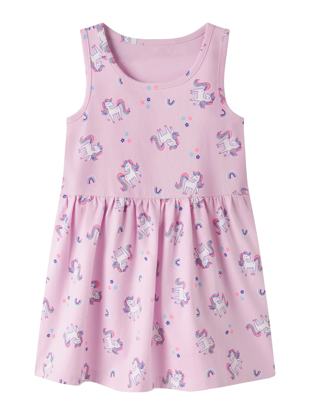 Specificaties: NAME IT Jurk ‘NMFVINEO’ lichtblauw / rosa / oudroze / wit