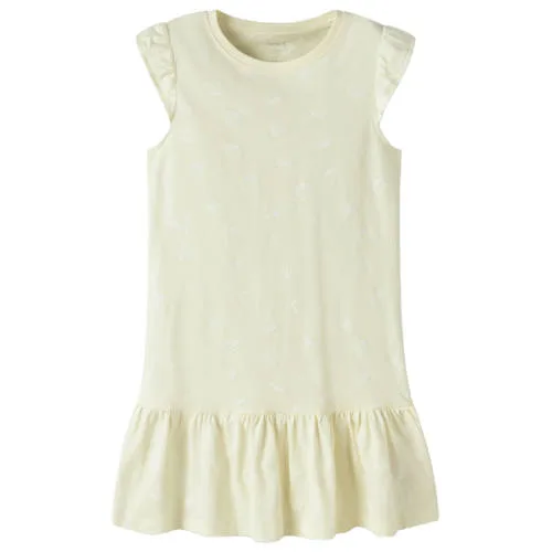Deze NAME IT meisjes jurk NKFVIDA is een comfortabele basis voor zonnige dagen. De jurk heeft een A lijn model dat soepel om het lichaam valt en een midi lengte die net over de knie reikt. De all over print geeft een speelse uitstraling, terwijl de ronde hals en kapmouwen zorgen voor een luchtig gevoel. Dankzij het materiaal van 100 procent katoen voelt de stof zacht aan op de huid.Luchtig ontwerp met speelse details A lijn model voor een soepel vallende pasvorm Midi lengte voor extra bedekking en bewegingsvrijheid All over print voor een levendige uitstraling Korte kapmouwen die de schouders subtiel bedekken Volant detail onderaan voor een zwierig effect Gemaakt van 100 procent katoen voor draagcomfort Ronde hals zonder sluiting voor makkelijk aan en uitComfortabel bij dagelijkse activiteitenMet de soepele pasvorm en het lichte katoen is deze jurk geschikt voor dagelijks gebruik, zoals school, een familiebezoek of een dag in de speeltuin. De midi lengte en kapmouwen geven voldoende ruimte om te bewegen tijdens spel en activiteiten.NAME IT KIDS als vertrouwde keuzeNAME IT KIDS richt zich op kleding die past bij het actieve leven van kinderen. Het merk combineert praktische ontwerpen met doordachte details, zodat de kleding prettig zit en er verzorgd uitziet.Een fijne jurk die het dagelijks aankleden eenvoudig en stijlvol maakt.