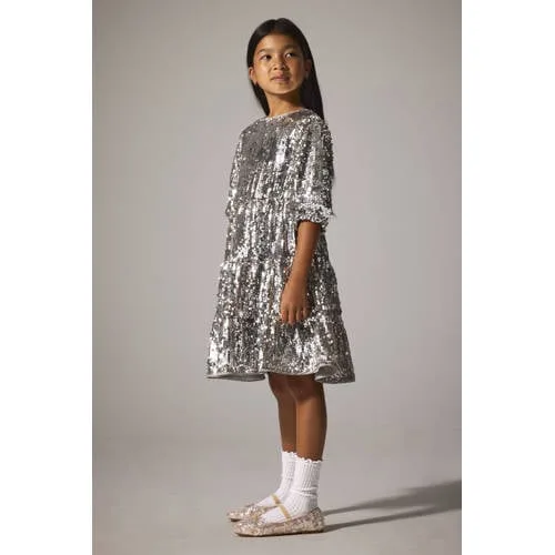 NAME IT KIDS A-lijn jurk met pailletten zilver