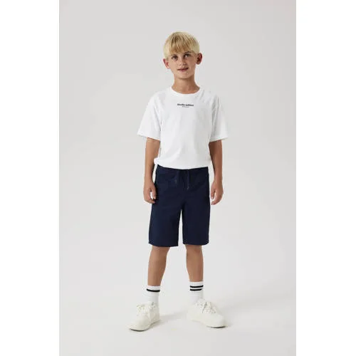 Deze NAME IT KIDS korte broek heeft een elastische tailleband met koord en is gemaakt van katoen. Met zakken voor en een zak achter, handig voor kleine spullen. De donkerblauwe kleur past bij veel outfits.