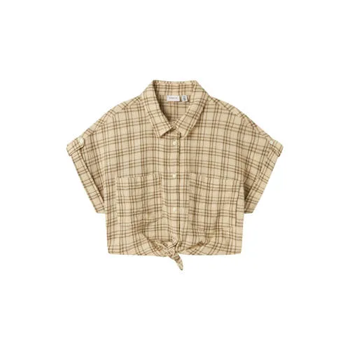 Deze NAME IT KIDS blouse heeft korte, rechte mouwen en een klassieke kraag. Gemaakt van 100% katoen met knoopdetails en borstzakken, geschikt voor meisjes, lichtgele en bruine kleur, regular fit voor dagelijks gebruik.