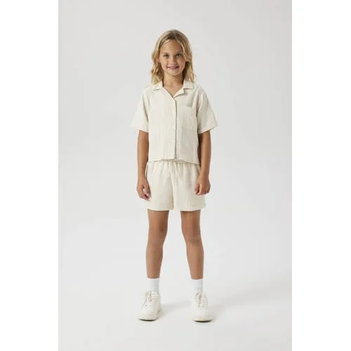 Deze NAME IT KIDS korte broek voor meisjes is gemaakt van 100% katoen. Het ontwerp heeft een elastische tailleband met koord voor een fijne pasvorm. De casual shorts zijn perfect voor een comfortabele en speelse look.