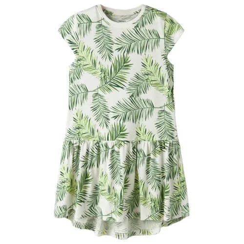Speels, luchtig en klaar voor elke dag, deze NAME IT katoenen meisjes jurk is geschikt voor schooldagen, speelafspraken en familiedagen. De groen met witte bladprint geeft een frisse uitstraling, terwijl de korte lengte en rechte mouwen veel bewegingsvrijheid bieden. De volant aan de onderkant zorgt voor een zachte, zwierige look waar kinderen zich makkelijk in kunnen bewegen.Frisse bladprint en comfortabel katoen Gemaakt van 100% katoen, voelt zacht aan op de huid en is prettig om de hele dag te dragen Groen/witte all over bladprint voor een vrolijke, natuurlijke uitstraling Korte jurk met rechte mouwen, ideaal voor warme dagen of met een vestje erover Ronde hals zonder sluiting, eenvoudig aan en uit te trekken Volant detail aan de onderzijde voor extra zwier bij elke stap Geschikt voor schoolkinderen en tieners, dit artikel valt normaal op maat Praktisch in onderhoud, wasbaar op veertig graden en warm strijkbaarEenvoudig te stylen voor elke dagDeze jurk uit de Daily collectie is gemaakt voor dagelijks gebruik. Combineer met sneakers voor school of sandaaltjes op een zonnige dag. Door de lichte katoenen stof en de relaxte pasvorm is dit een model dat makkelijk terugkomt in de week.Kindvriendelijke stijl van NAME ITNAME IT ontwerpt kleding speciaal voor kinderen, met aandacht voor draagcomfort en eigentijdse prints. De collecties sluiten aan bij het actieve leven van kinderen, zodat zij vrij kunnen bewegen en spelen in kleding die er modern uitziet en prettig zit.Een jurk met een vrolijke print waarmee je kind zo klaar is voor een nieuwe dag.