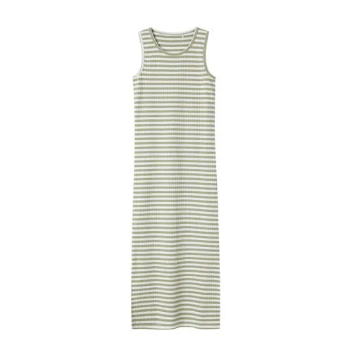 De NAME IT KIDS jurk voor meisjes heeft een NKFSURAJA stijl. De groene en witte bodycon maxi jurk is mouwloos en gemaakt van katoenmix. De ronde hals en textuur met split geven de jurk een speelse uitstraling.