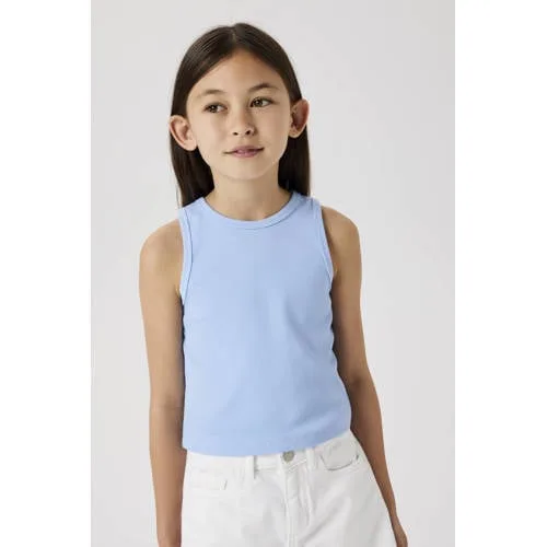 De NAME IT KIDS top voor meisjes is mouwloos en heeft een ronde hals. De stijlnaam is NKFNAKAL SL CROP TOP NOOS. Deze top is gemaakt van katoen en heeft geen zakken. Perfect voor een comfortabele dag.