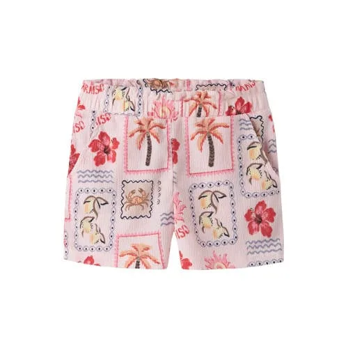 Deze roze korte broek voor meisjes van NAME IT is een fijne basic voor elke dag. De short heeft een reguliere pasvorm en taille, waardoor de broek casual zit en makkelijk te combineren is met T-shirts, tops of een luchtige blouse. De all over print in speelse tinten geeft de broek een vrolijke uitstraling, ideaal voor school, spelen en vrije tijd.Praktische details voor elke dag Casual shorts met regular fit en regular waist voor een comfortabele pasvorm Zachte, soepele stof met een beetje stretch door 2% elastaan Elastische tailleband zodat de broek makkelijk aan en uit gaat Handige zijzakken voor kleine spullen zoals een haarelastiekje of sleutels All over print in roze tinten voor een speelse look Geschikt voor schoolkind en tiener, uit de Daily collectie van NAME IT Maatadvies: dit artikel valt normaal Onderhoud: wasbaar op 40 graden, niet in de droogtrommel, warm strijkbaar (2 punten)Fijne short voor school en vrije tijdDeze korte broek past goed bij drukke dagen vol bewegen, rennen en spelen. Combineer met een eenvoudig T-shirt en sneakers voor school, of met een fijne trui op koelere dagen. Door de elastische taille zit de short ook tijdens het fietsen of buitenspelen comfortabel op zijn plek.NAME IT: kinderkleding met oog voor gemakNAME IT ontwerpt kinderkleding die past bij het dagelijkse leven van kinderen. De ontwerpen zijn speels en herkenbaar, met aandacht voor draagcomfort en praktische details. Zo ontstaat kleding waar kinderen zich vrij in kunnen bewegen en die ouders makkelijk in gebruik en onderhoud vinden.Een vrolijke en comfortabele korte broek die snel een favoriet in de kast wordt.