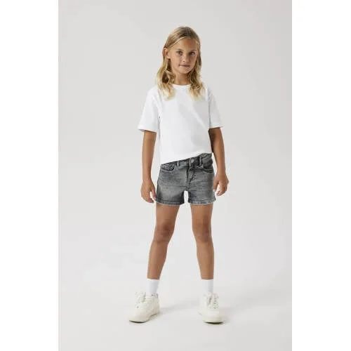 Deze NAME IT KIDS denim shorts is van de NKFSALLI stijl. De korte broek heeft een slim fit en een verstelbare taille, perfect voor meisjes. Uitgevoerd in light grey denim met een rits- en knoopsluiting en 5-pocket design. Gemaakt van katoen en elastaan.