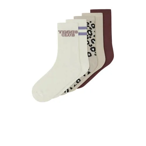 NAME IT KIDS sokken – set van 5 donkerrood/beige/ecru